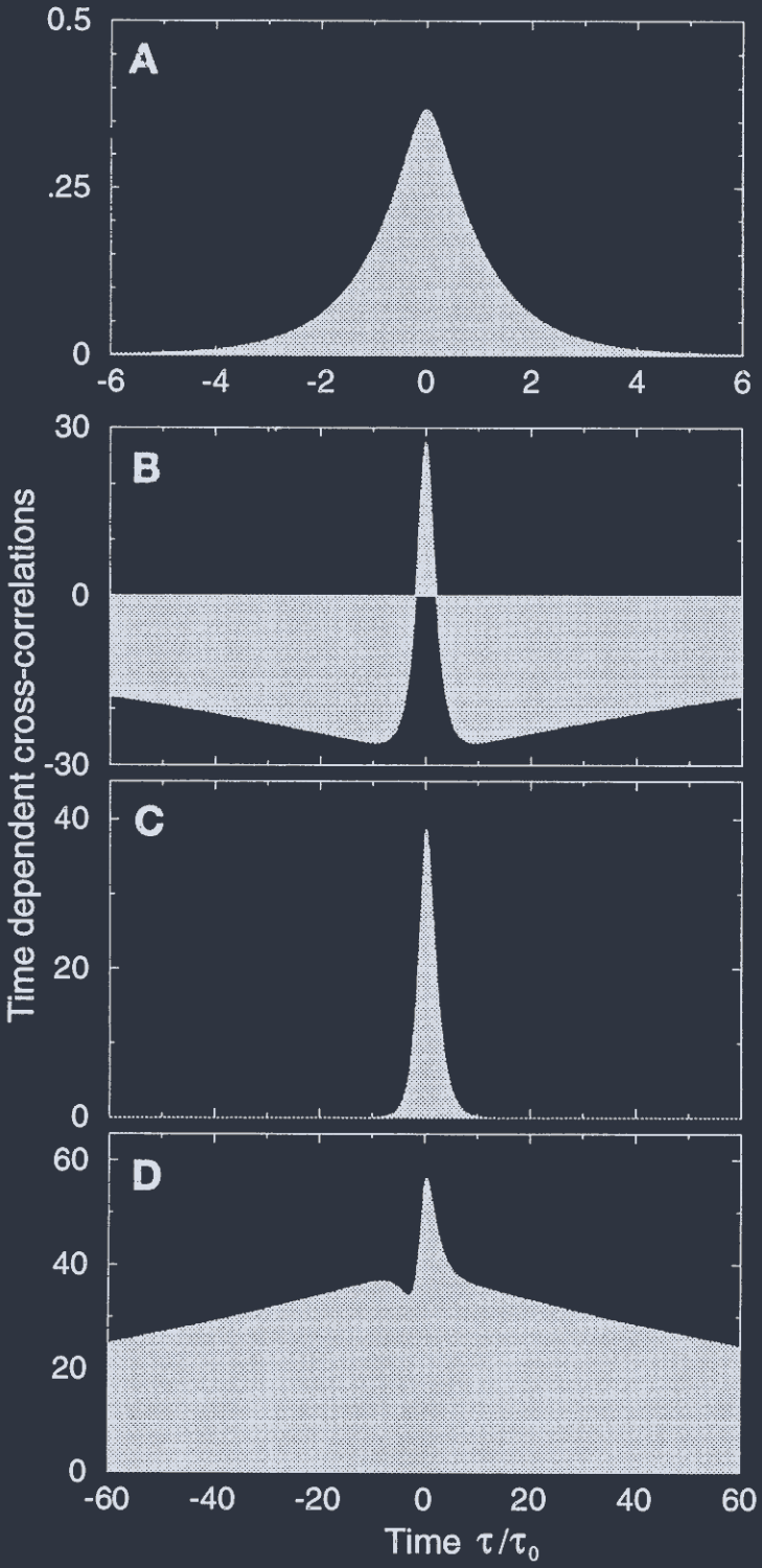 $$ C(\theta,\theta^{\prime};\tau) \propto \frac{1}{\epsilon}\sin{(2\theta-2\theta_{0})}\sin{(2\theta^{\prime}-2\theta_{0})}\exp{(-\epsilon|\tau|/\tau_{0})} $$