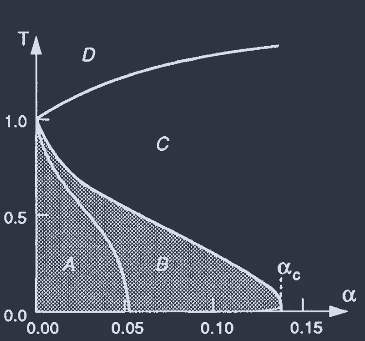 规定 $P_{\text{error}} = \text{Prob}(C_{i}^{\nu}>1)$ 为出错概率, 那么 $P_{\text{error}} <\epsilon$ 时的 $p = p_{\text{max}}$ 被称作 storage capacity(存储容量).