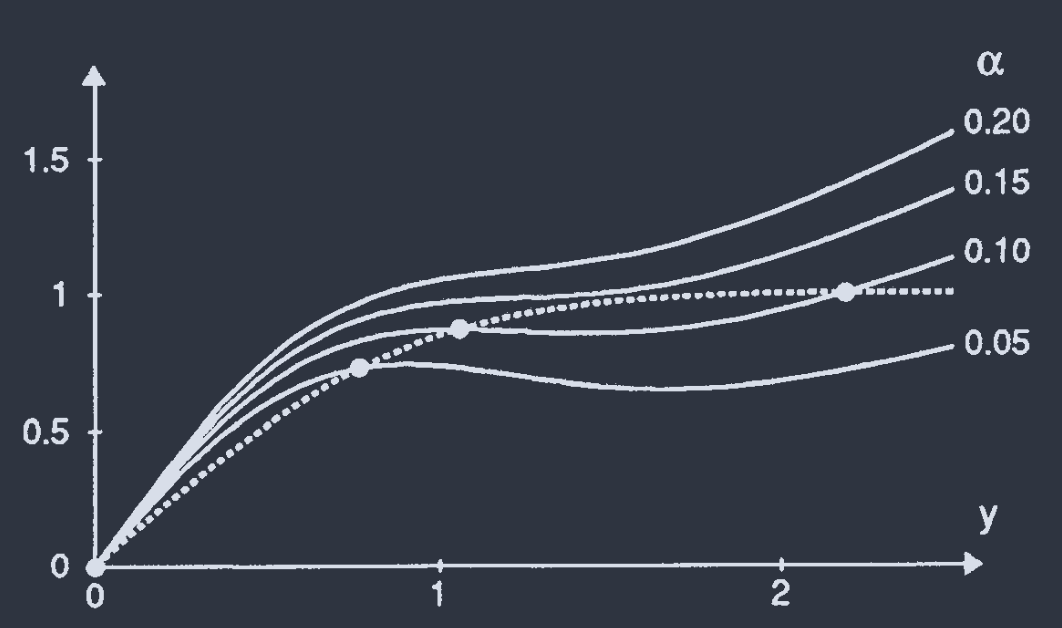$$ y\left( \sqrt{2\alpha} + \frac{2}{\sqrt{\pi}e^{-y^{2}}} \right) = \text{erf}(y) $$