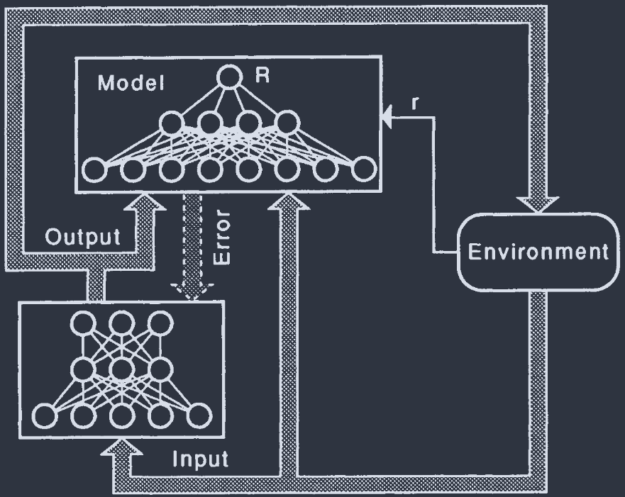 通过 back-propagation 实现: 通过 $\delta = -R$ 传回主网络各单元独立的误差信号. 此时可使用常规的监督学习.